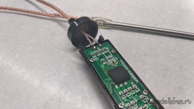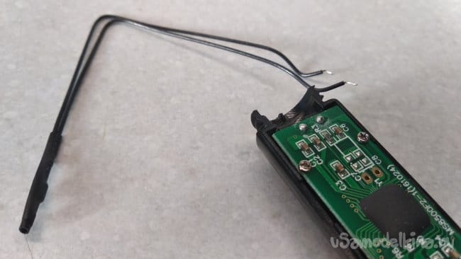 Тогда при наворачивании крышки, припаянный провод будет вращаться внутри оплётки, не причиняя вреда плате термометра.