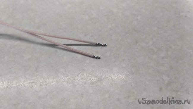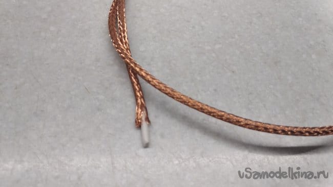 Сложить приготовленный теплостойкий провод МГТФ вдвое, а кончики зачистить и облудить.