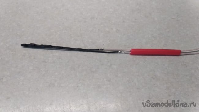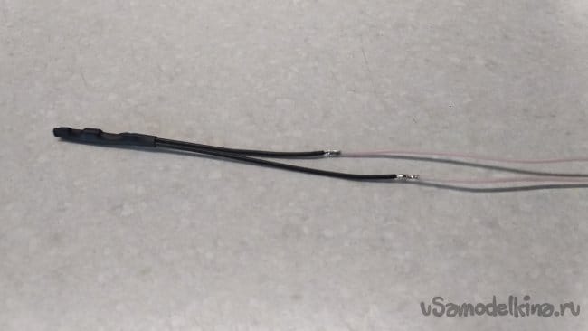 Изолировать спаянные кончики проводов термоусадочной трубкой.