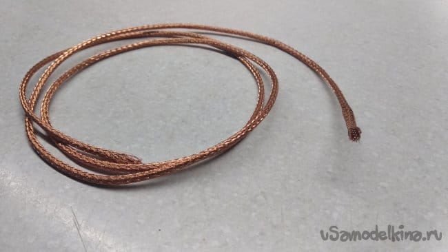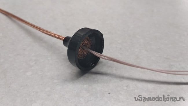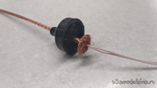 Для этого, распушив край оплётки, закрепить её внутри крышки, небольшим количеством термоклея.