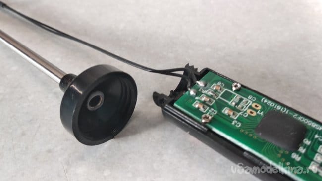 Немного разогрев трубочку щупа паяльным жалом, аккуратно вытащить его из корпуса.