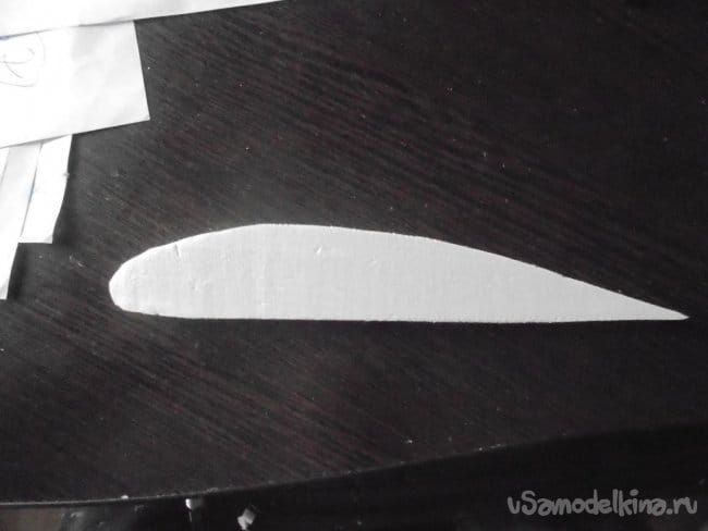 Начал с крыла. Долго искал подходящий профиль, даже с другом советовался. Подобрал, наконец, подходящий профиль, вырезал нервюры.