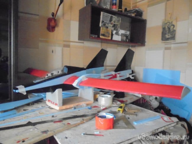 По мере склеивания различных деталей конструкции модели, провожу локальную обтяжку цветным скотчем.