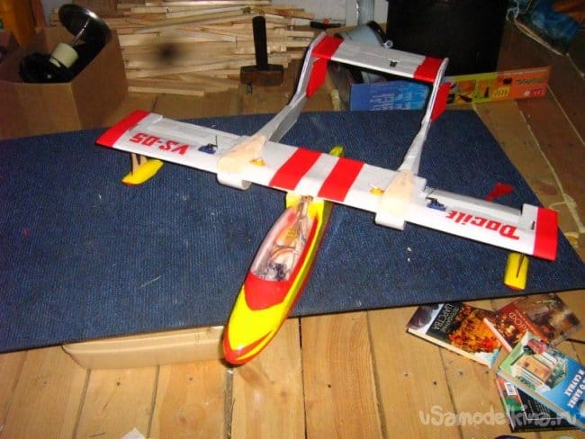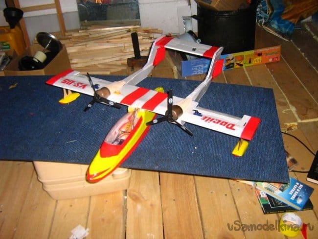 Форма фюзеляжа, получилась сама собой, как только я смастерил кабину из пластиковой бутылки и посадил в неё пилотов.