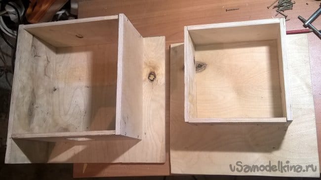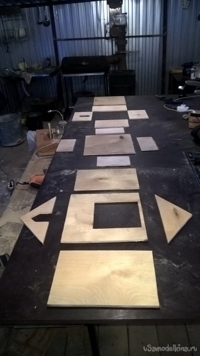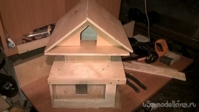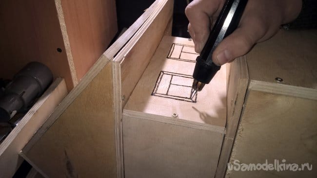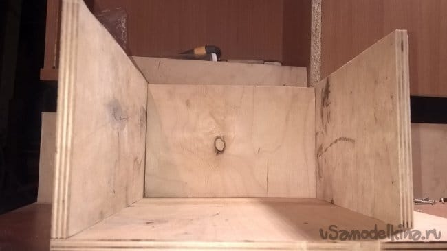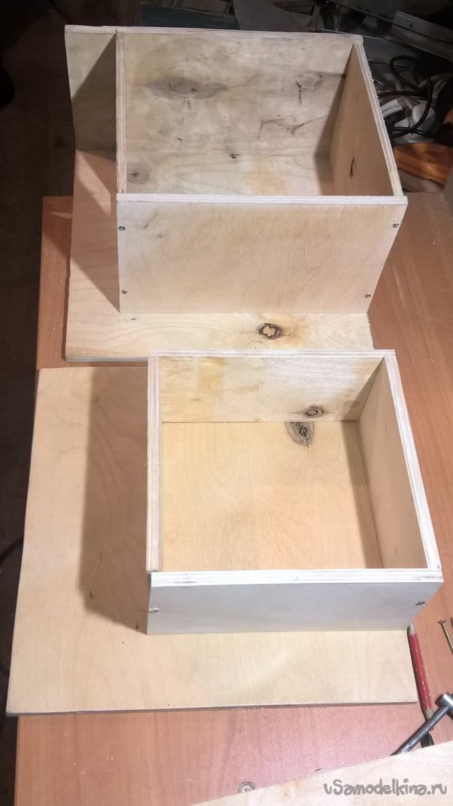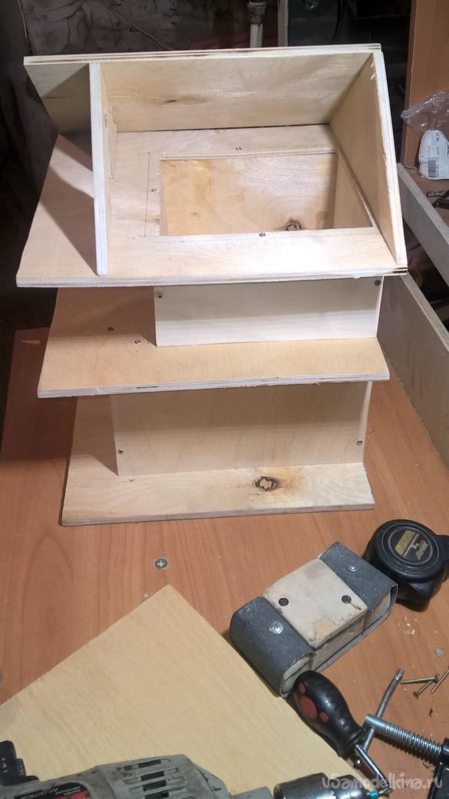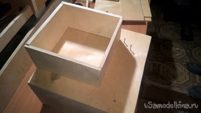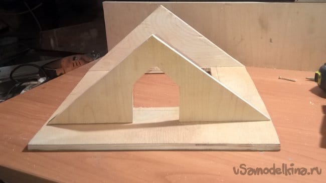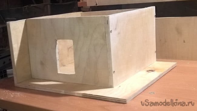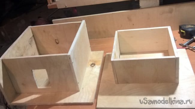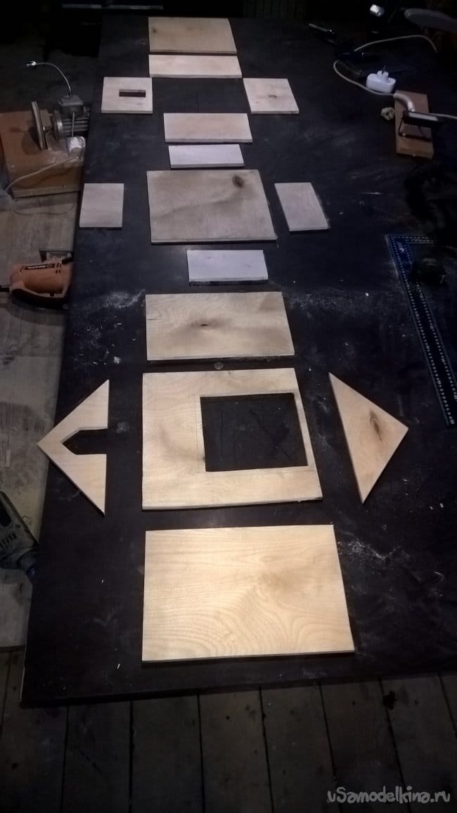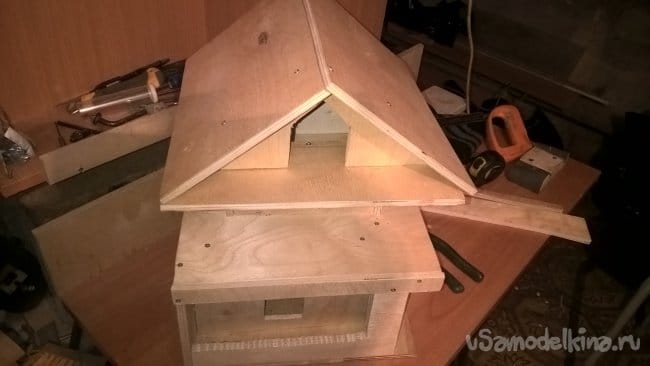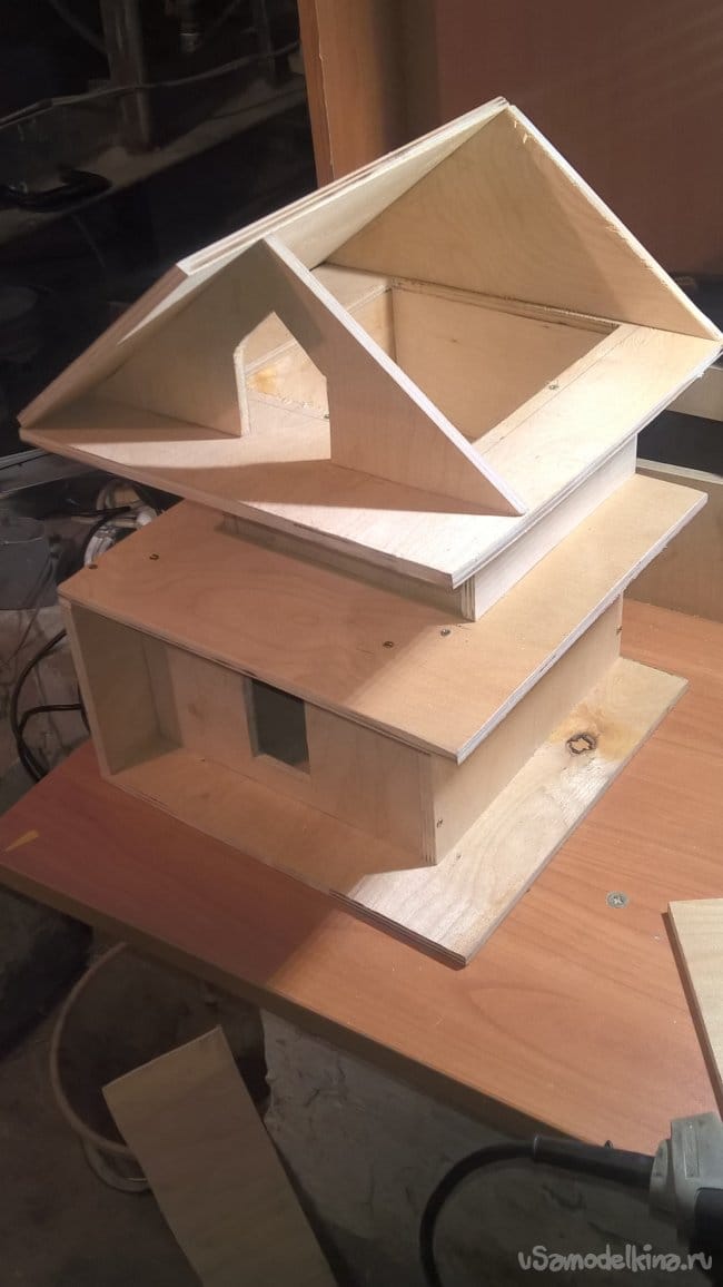 Вырезал в одном из дне прямоугольник (размеры 240х240 мм) для того чтобы соединить крышу и второй этаж