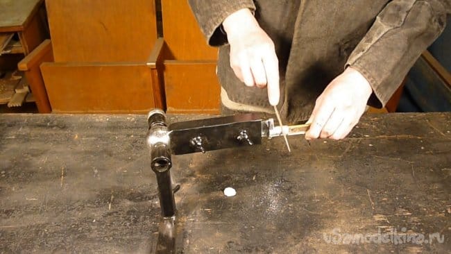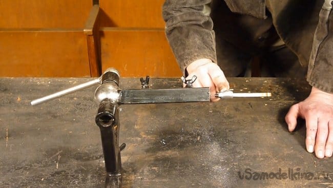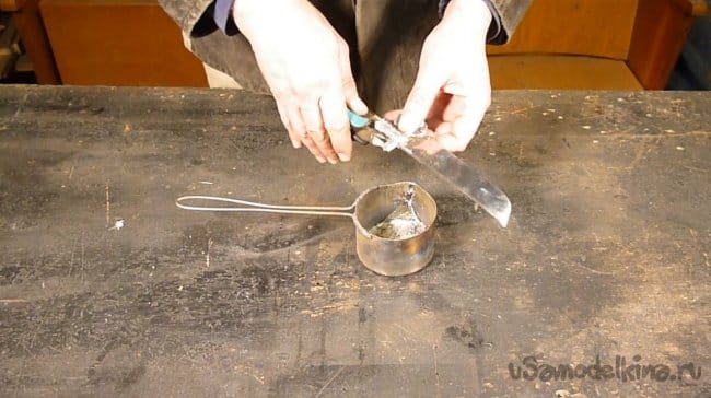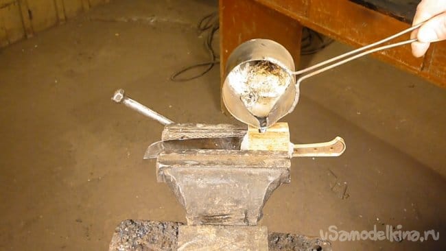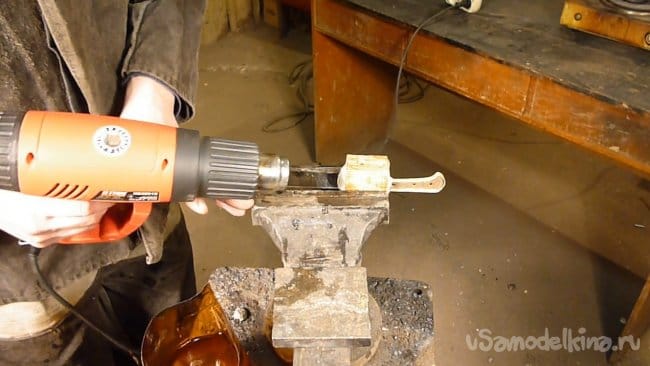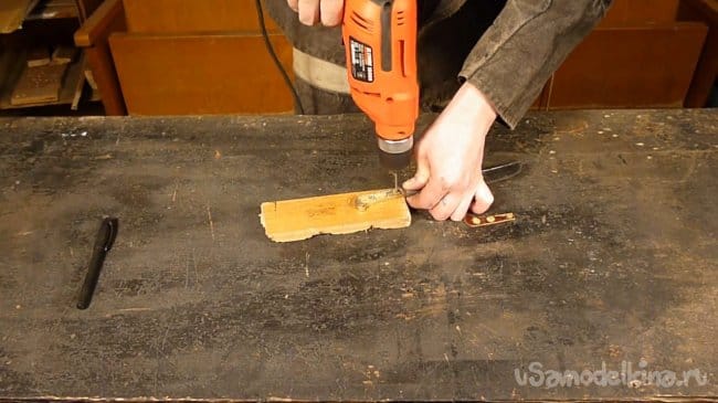 Деревянный брусок раскололи пополам и дрелью высверлили в нем примерную форму будущего гюльбанда, не забыв про литник и воздухоотвод.