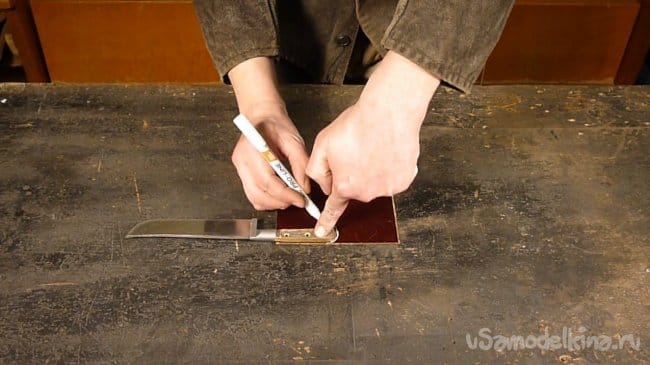 Для внутренних вставок используем текстолит толщиной 0.8 мм. Размечаем по старым картонным вставкам