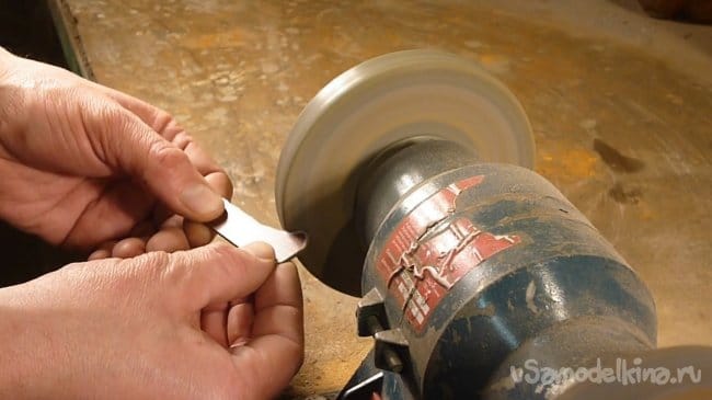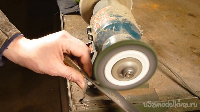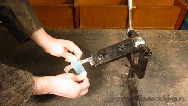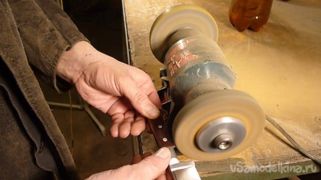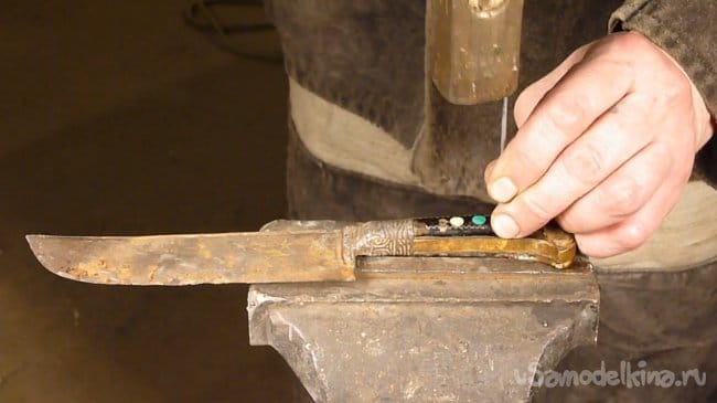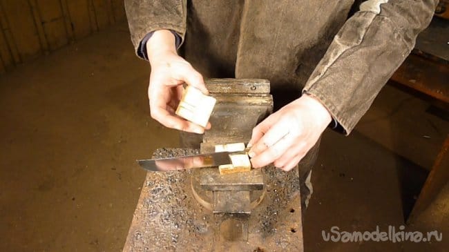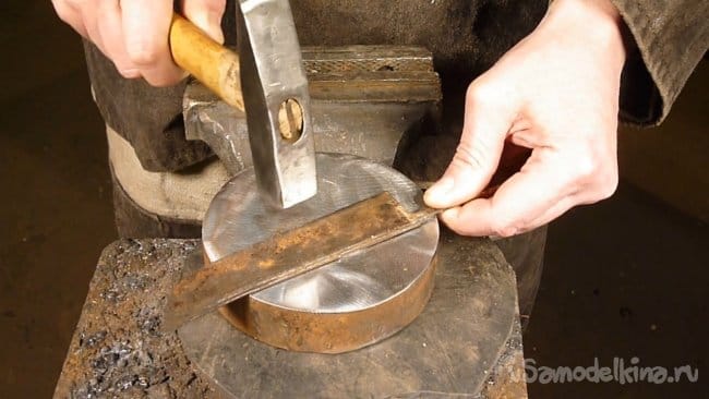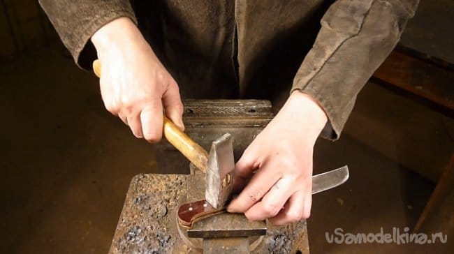 Несильными ударами молотка ровняем лезвие. После прошлой заточки это оказалось очень не просто.