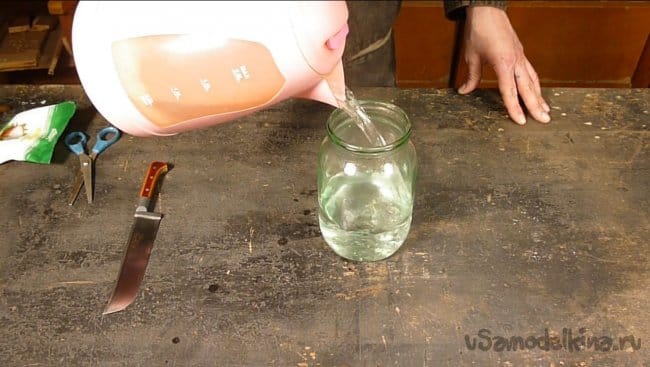 В 1.5 л. горячей воды растворяем 20 гр. лимонной кислоты.