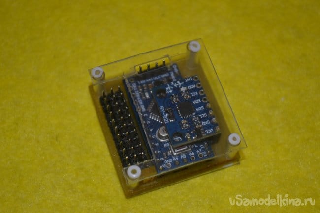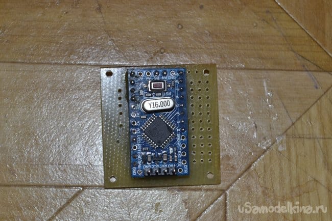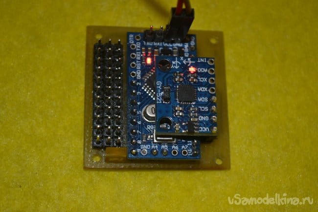 За ними arduino. Ножки для прошивки ардуинки нужно впаять вверх или угловые вбок. Можно залить скетч сразу, можно не заливать, это не важно, т.к. собранное устройство все равно придётся подключать к компьютеру, по этому контакты для программирования должны быть легкодоступны. Единственное советую проверить arduino перед впаиванием, залить любой проверочный скетч и убедиться, что плата прошивается. Просто перепаивать потом будет тот еще геморрой.