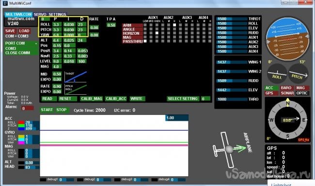Важный момент про отключение устройства от компьютера. Если выдернуть провода программирования из устройства или выдернуть конвертер из USB порта не закрыв COM порт или программу MultiWiiConf - примерно со 100%-й вероятностью произойдет краш системы и синий экран. По крайней мере на моем ноуте это так. Я даже специально проверял. Не знаю, проблемы ли это моего железа или так реагирует видна на виртуальный COM порт, но предупрежден - значит вооружен. Имейте в виду.