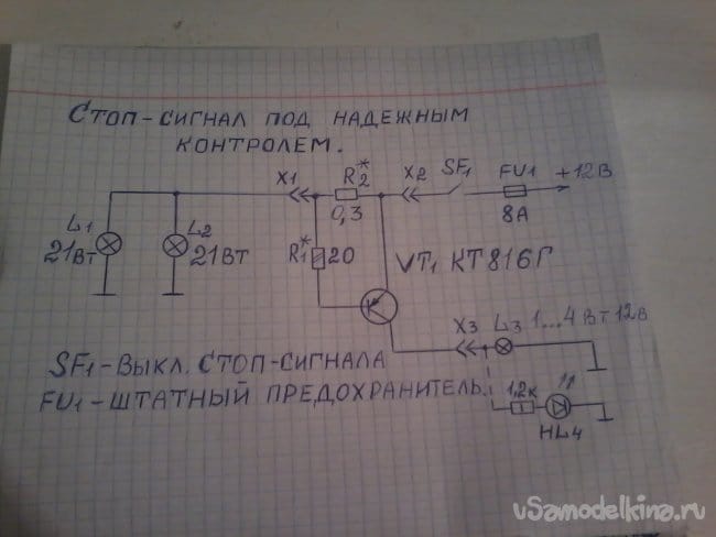 Здравствуйте друзья Самоделкины! Многие из вас сталкивались с такой проблемой, как перегорание ламп стоп –сигнала. И узнаем мы об этом значительно позже, чем нам бы хотелось. Обычно я проверяю лампы стоп –сигналов при выезде из гаража, но в спешке иногда забываешь про них. По приезду домой обнаруживаешь, что какая то из ламп не горит. Хорошо, что их две, а если сгорят сразу обе лампы, тогда уж точно при резком торможении в вас могут въехать сзади и довольно - таки сильно. И виноваты в этом будете вы.