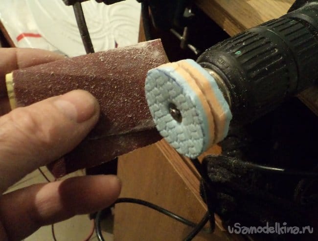 Временная ось - винт с гайками закрепляешь в патроне дрели и наждачной шкуркой придаешь требуемый профиль.