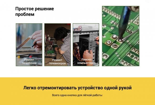 Представляю вашему вниманию ручной паяльник с подачей припоя. Таким паяльником можно паять одной рукой, не держа припой второй рукой. Как это работает: