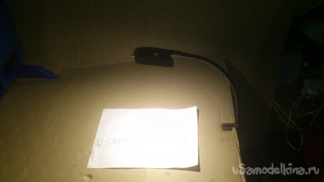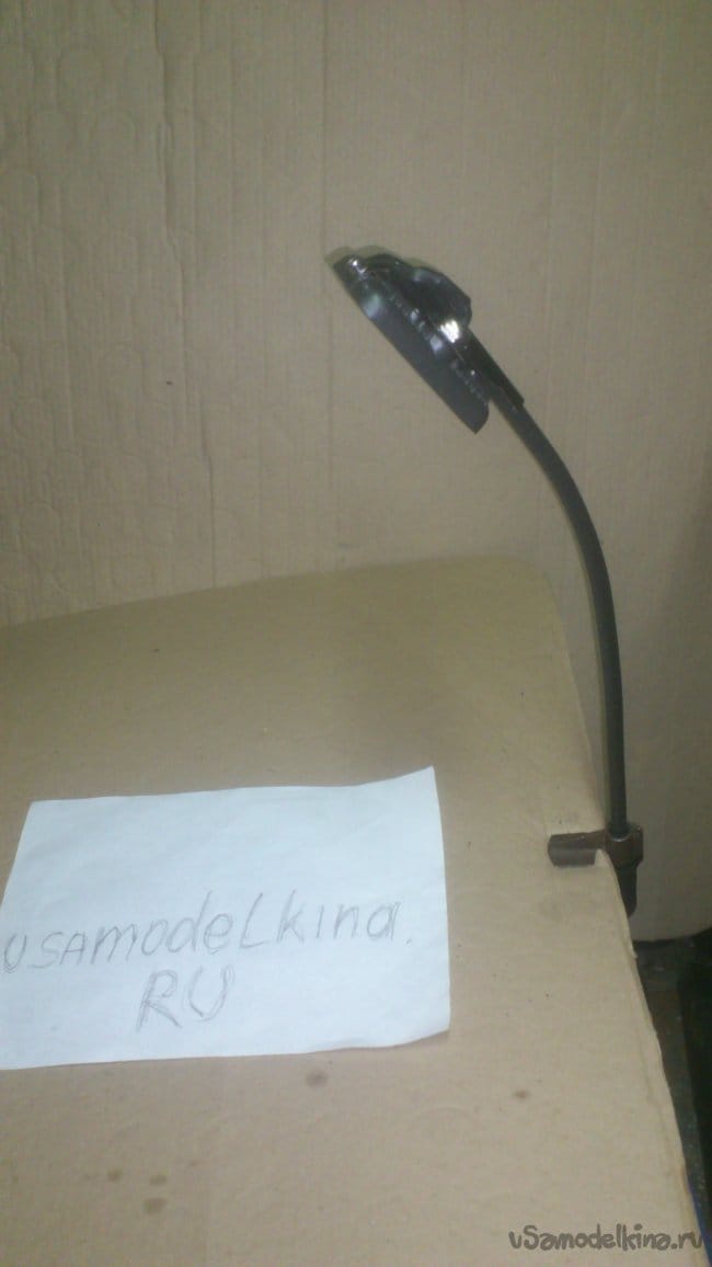 Вот и всё. Лампа получилась очень удобной. Светит ярко. Направить легко можно в любом направлении. Места на столе не занимает. Когда не нужна - можно просто отогнуть за стол.