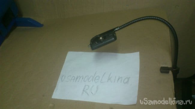 А если кому-то необходим выключатель, то можно его закрепить на "голове" лампы, или на струбцине. Как наименее удобный, но наиболее легковыполнимый вариант - повесить в разрыве шнура.