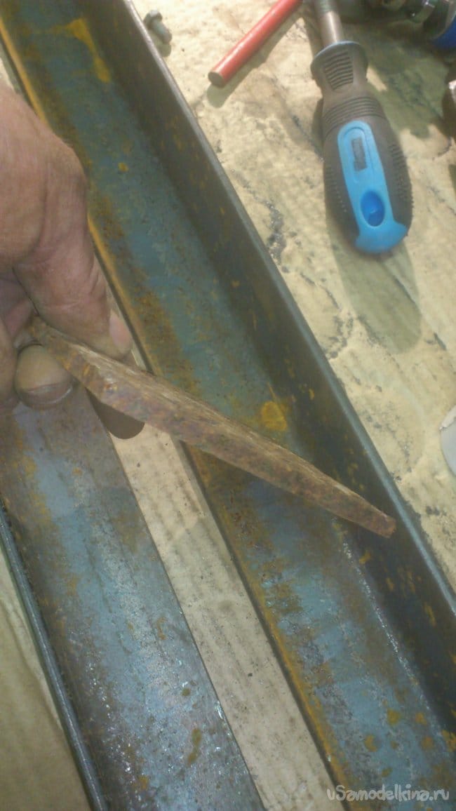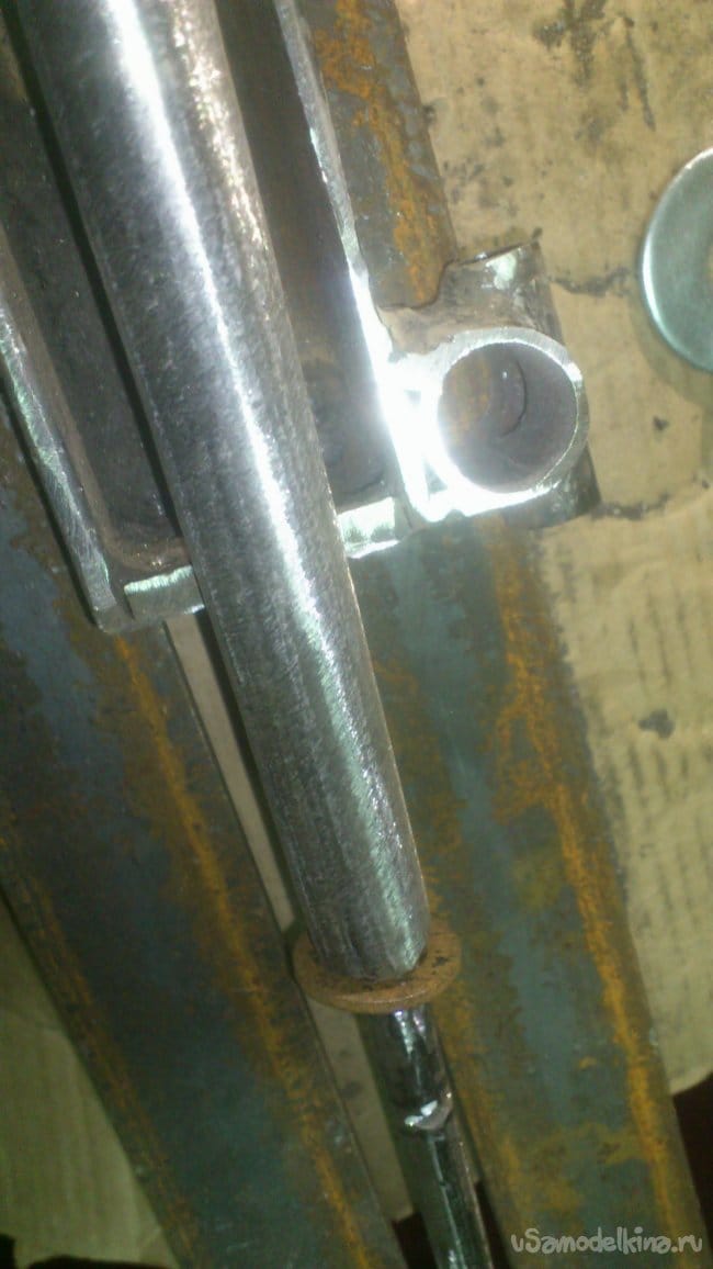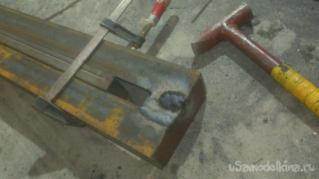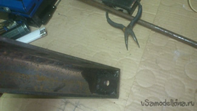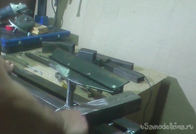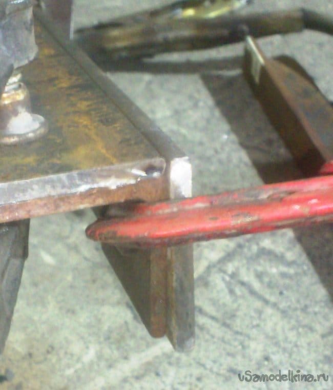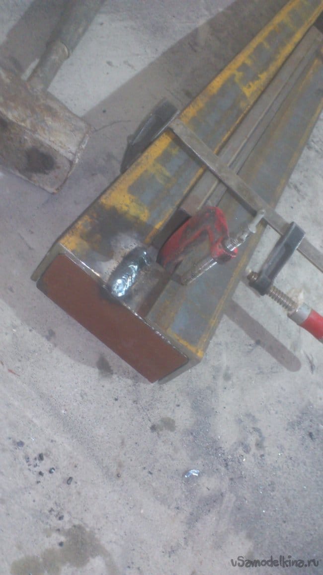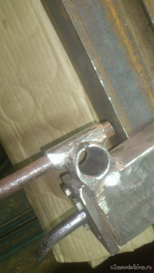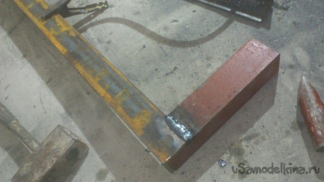 Отрезав куски нужной длины, я сварил их между собой и приварил к корпусу основания подручника: