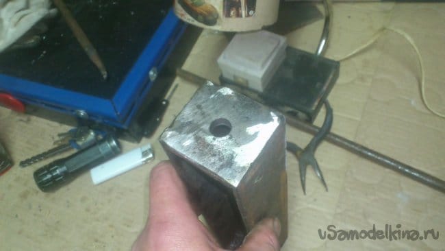 В центре каждого торца просверлил отверстия сверлом 12 мм - для оси эксцентрикового вала.