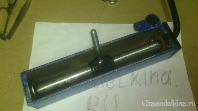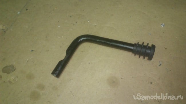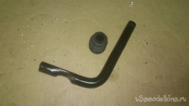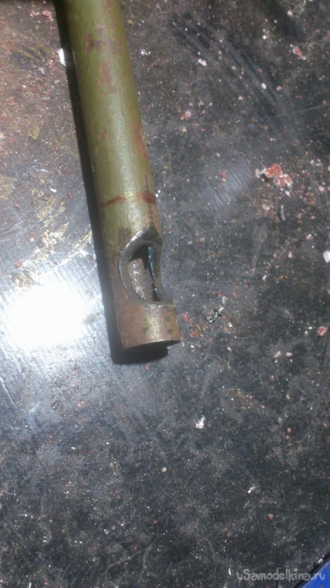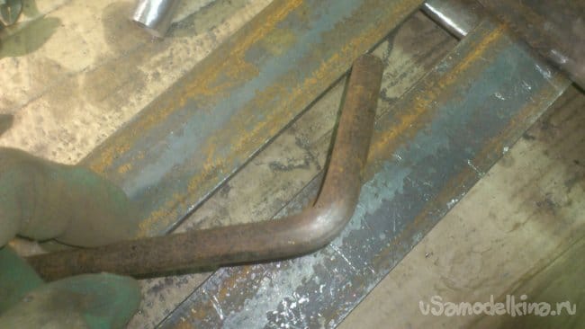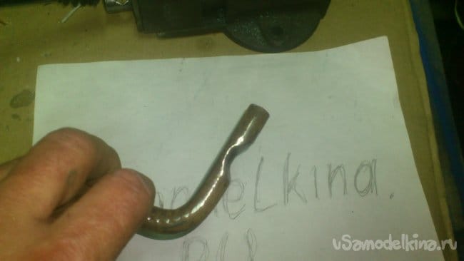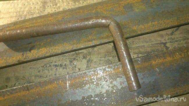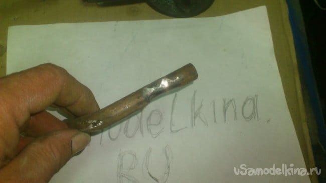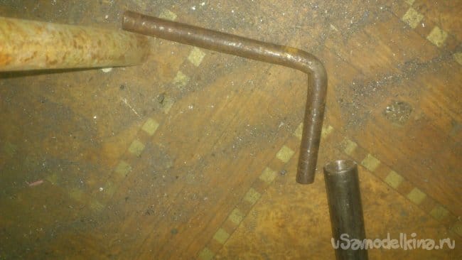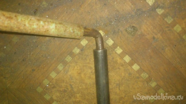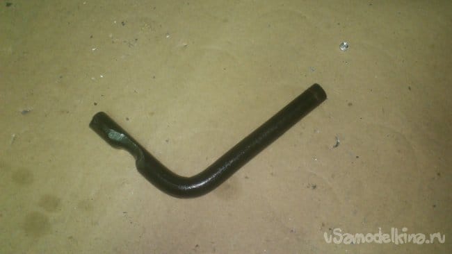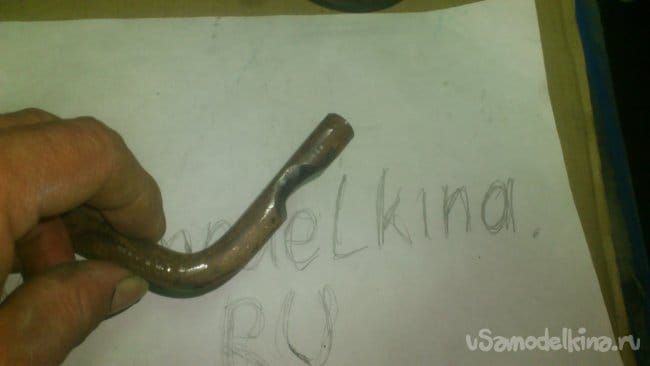 Сделав небольшой надрез, я, при помощи двух длинных труб, согнул штырь, не доводя до прямого угла: