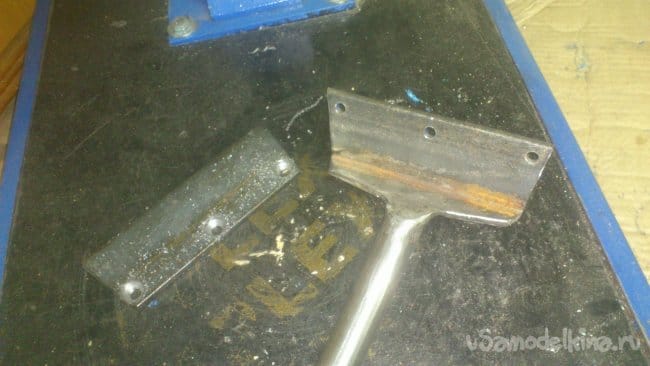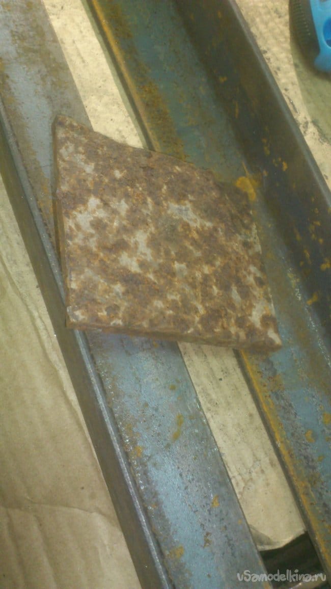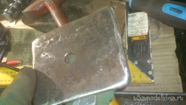 Теперь осталось сделать зажимную площадку. Так как она должна обладать большой жёсткостью, то сделать я её решил из куска толстого листового металла, который нашёлся в "моём металлоломе":