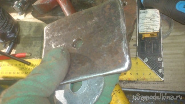 Прикрепить плоскость я решил не сваркой, а четырьмя болтами М6 с гайками.