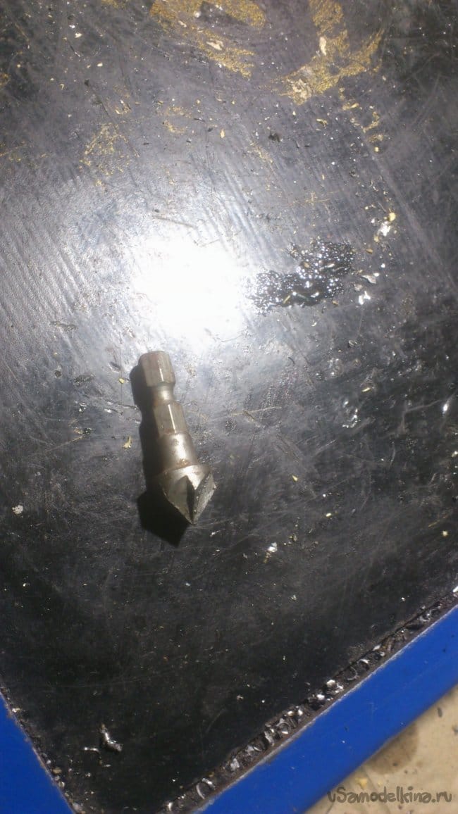 Если снизу гайки мешать ничему не будут, то сверху шляпки болтов нужно сделать впотай, чтобы они не мешали движению резца. При помощи зенкера я рассверлил отверстия под потайные болты: