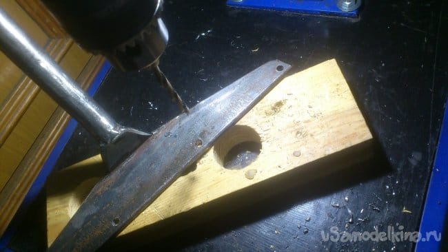 И изготовил из полосы крышку. Вначале просверлил отверстие под вал: