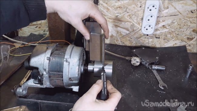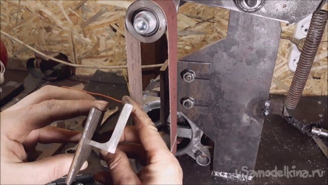 Что можно сказать про двигатель, то его мощности вполне хватает. На регуляторе выставлены обороты 6000. При таком диаметре приводного ролика и оборотах, скорость ленты приличная, и вместе с регулировкой позволяют обрабатывать различные материалы. Двигатель нужно обязательно закрыть для предотвращения попадания металлической пыли.