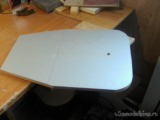 Пластину стола изготовил из ламинированная плита МДФ 10 мм.