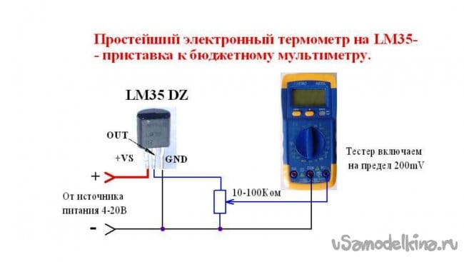 Основу будет составлять специальная микросхема типа LM35 полученная с Алиэкспресс (цена примерно 30р).