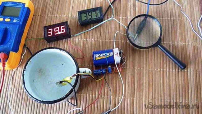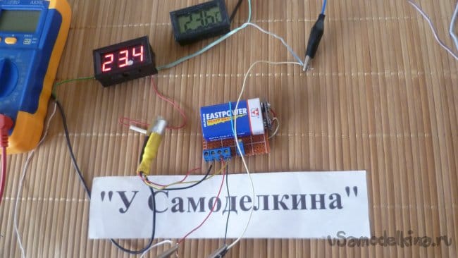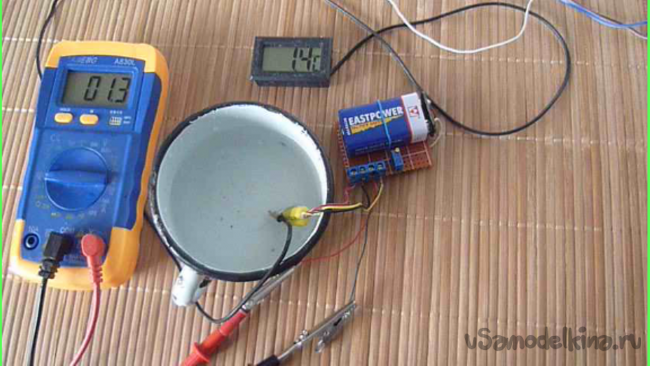 Остается подстроечным резистором выставить реальную температуру на вольтметре. Также проверим показания по образцовому термометру.