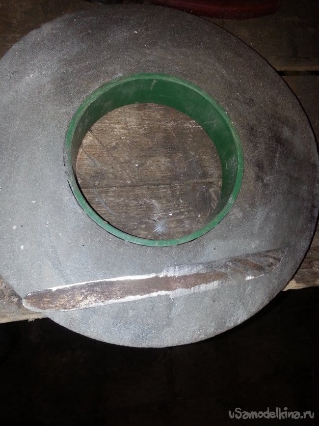 Далее на своём круглом наждачном диске отшлифую края. Убираю все заострения по краям, шлифую плоскость лезвия грубым абразивом