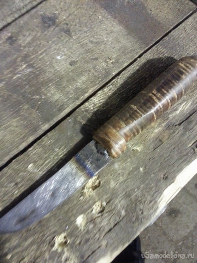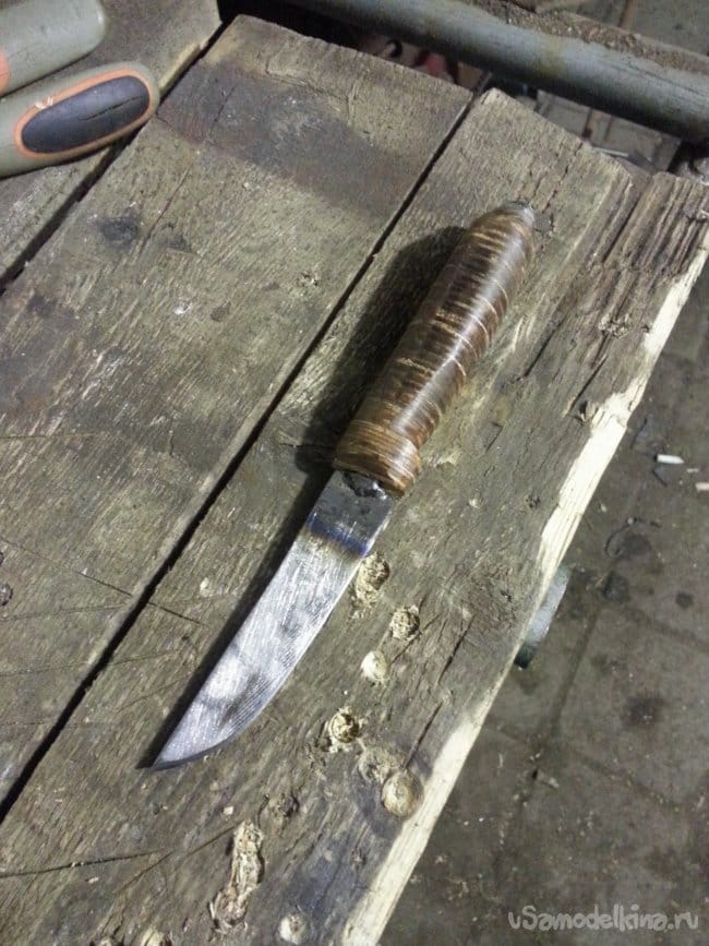 Далее я окончательно шлифую нож на своем, типа, наждаке