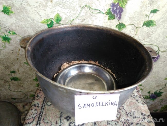 2. Крышку подобрал из старой сковородки, можно также использовать алюминиевую фольгу, плотно обвернув ее по кругу казанка в несколько слоев.