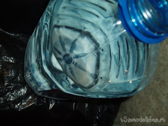 На фото для сравнения - талая вода в бутылке с зеленым горлом, а в синей - то, что осталось после слива.