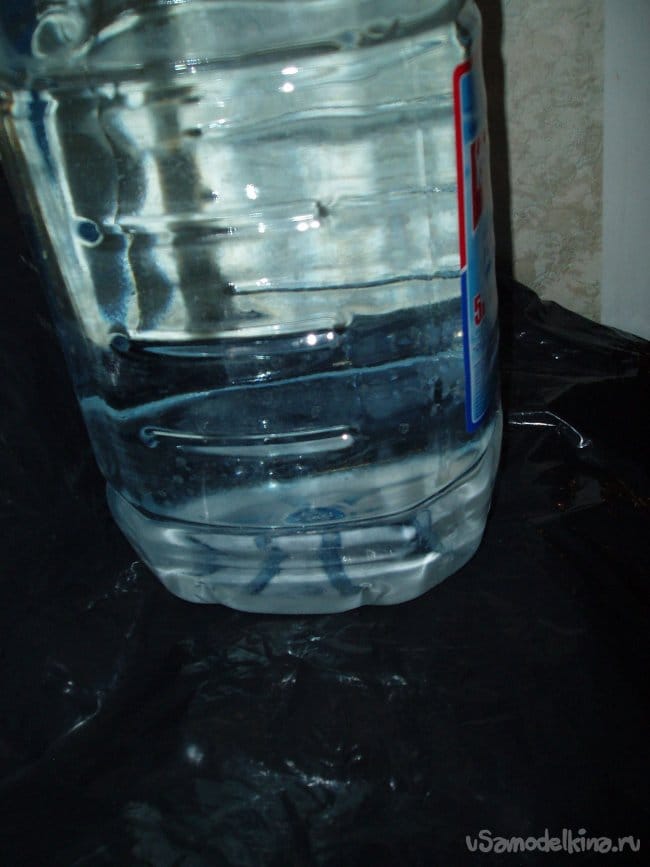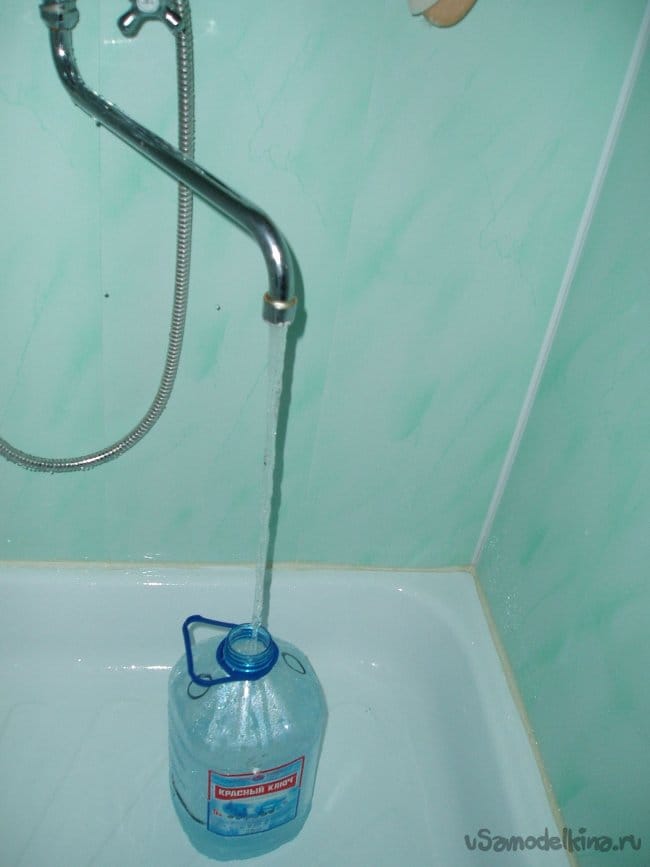 Наливаем воду из крана в пластиковую баклажку. Даём отстояться полчаса.