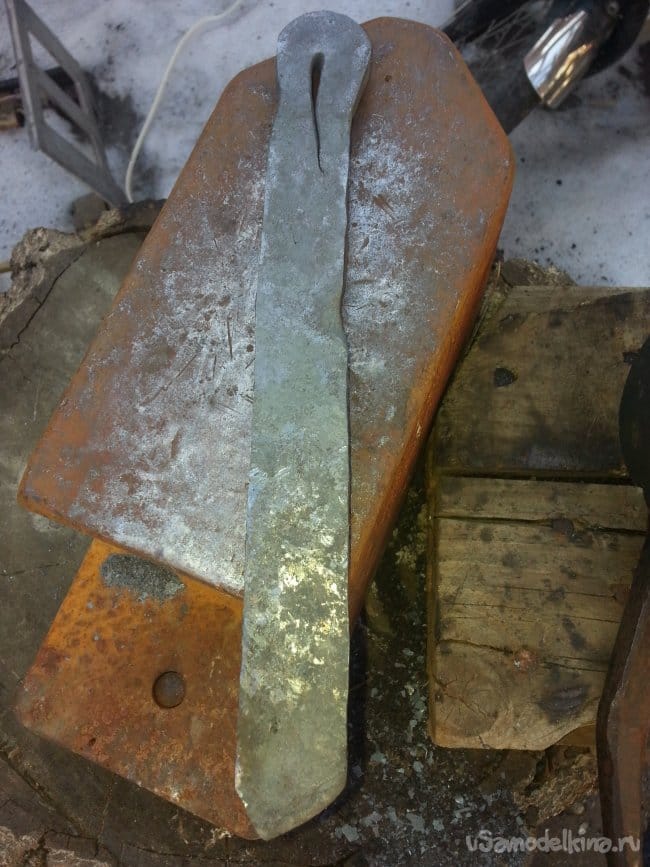 Начинаю ковать там где изгиб, тем самым выравнивая заготовку