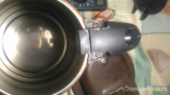 прозваниваем выключатель. Все работает. Сборку чайника производим в обратной последовательности.