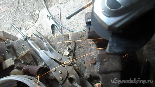 Из тонкого швеллера вырезаем с помощью болгарки уголок