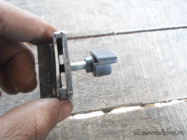Подбираем болт с барашком вставляем пластиковую линейку купленную в магазине и наша самоделка готова