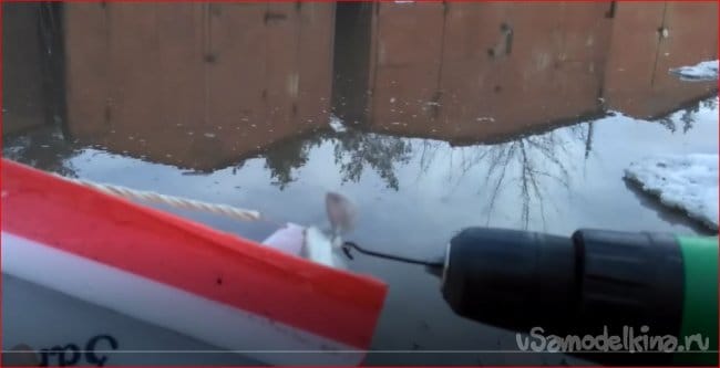 Дальше после зарядки аккумулятора берем модель и шуруповерт и отправляемся на водоем для получения массы удовольствия. Можно устраивать соревнования чья модель дальше проплывет, и чья модель быстрей и точней.