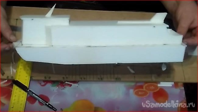 После на палубе делаем разметку для ходовой рубки и пассажирского салона.