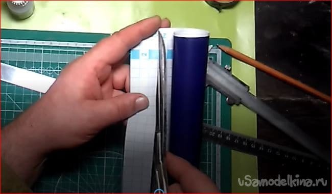 И так, начнем с изготовления гребного винта из жести от банки, берем циркуль и рисуем на жести круг диаметром 4 см.