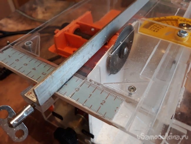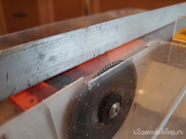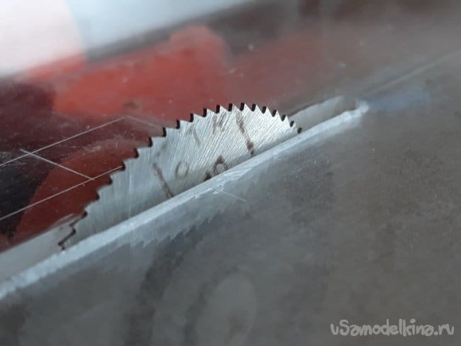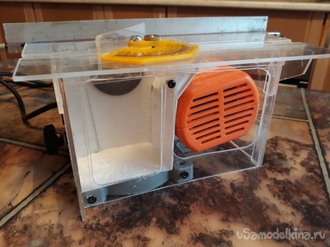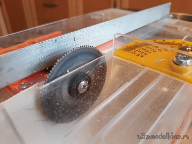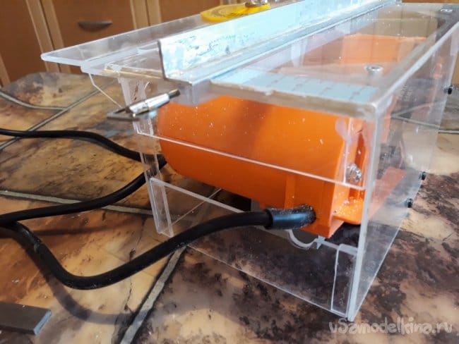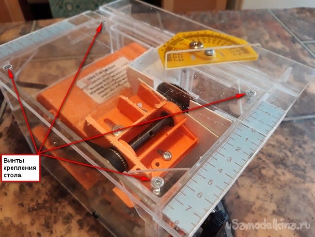 Стол пилорамы изготовлен из оргстекла, крепится к приливам боковых стенок винтами и по краям имеет линейки.