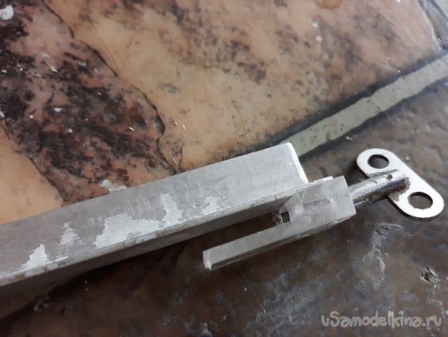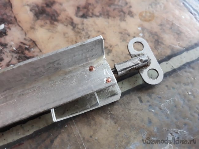 В оставшемся коромысле просверлил отверстия по регулировочным пазам отпиленной части коромысла. Другими словами повернул на 180 градусов и закрепил. Вот так.