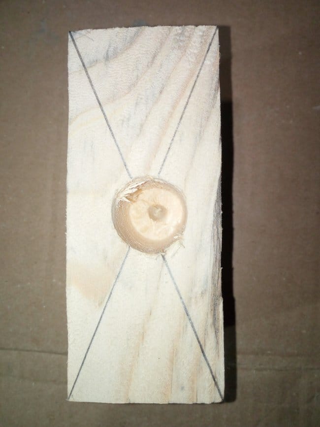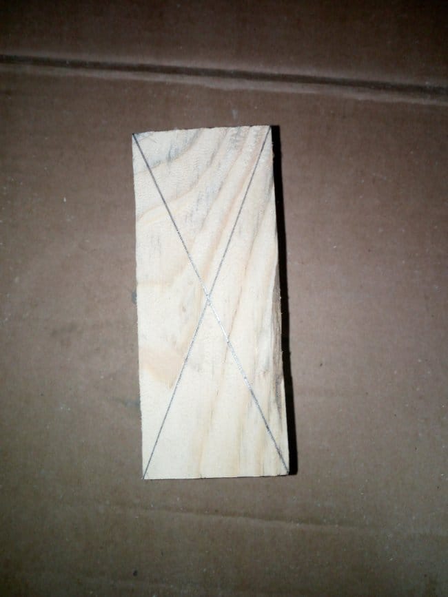 Нужно найти центр у этой заготовки. Для этого от угла одной стороны проводим диагональную линию к другой. Пересечение этих линий и есть центр нашей детали.