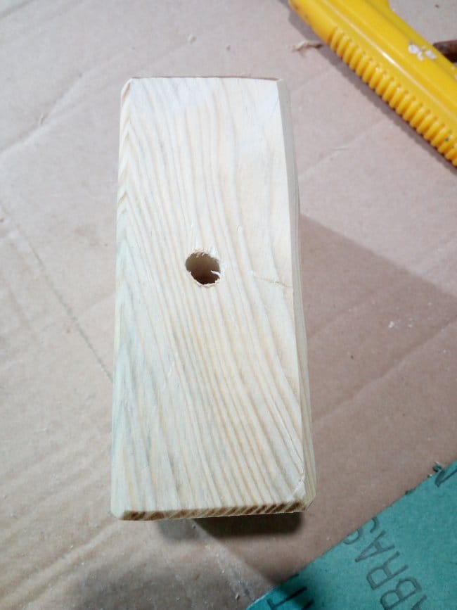 Внутри каждой из заготовок я высверлил сквозное отверстие под шпильку. Для этой цели лучше иметь сверлильный станок или стойку для дрели, чтобы ровно фиксировать дрель. У меня этого нет, поэтому пришлось сверлить на глаз. Это конечно сказалось на качестве отверстия. При выходе сверла с противоположной стороны у нескольких частей ручки отверстия получились не по центру. Далее наждачкой зачищаю все огрехи возникшие при пилении и сверлении.