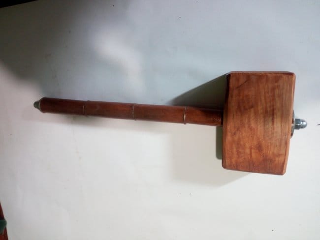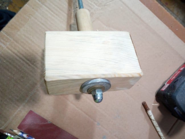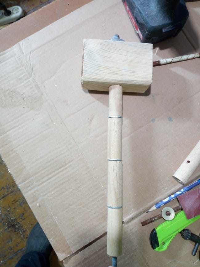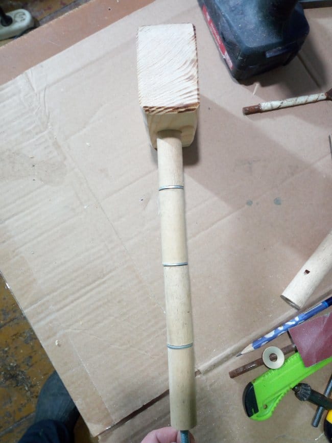 Шпилька, которая будет проходить через всю рукоять и верхнюю часть киянки будет дополнительным усиливающим элементом всей конструкции.
