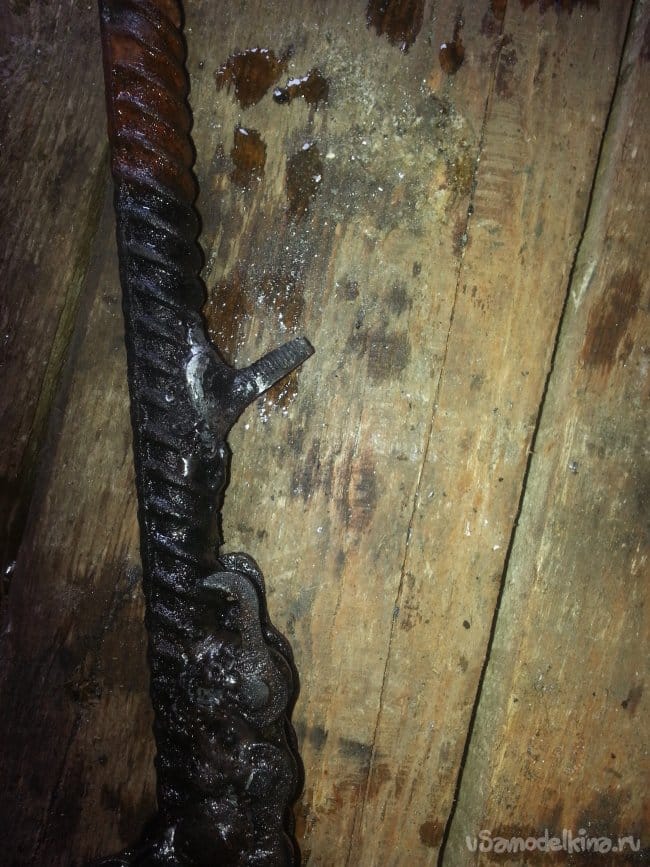 Теперь отступив 10см, привариваем шляпку болта к арматуре параллельно цепи