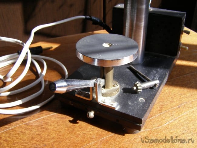 Со временем мне в руки попался двигатель от швейной машинки с педалью и лампой подсветки. Я, конечно же, заменил маломощный двигатель КД-2 стоявший изначально, на более мощный от швейного привода. Да, и с подсветкой стало работать гораздо интересней, а вот педаль что-то у мен не прижилась. Угол наклона самой педали большой устает нога. Убрал ее.